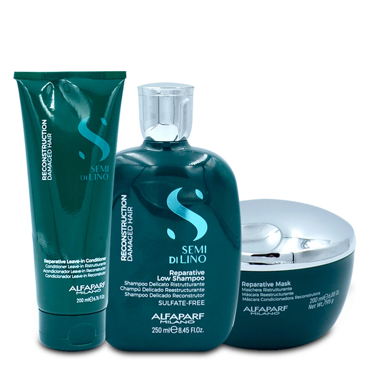 Be the first to review “Alfaparf Milano Semi Di LINO Reconstruction Demage Hair Reparative Shampoo/Conditioner/ Mask Kit Home Care” Cancel reply