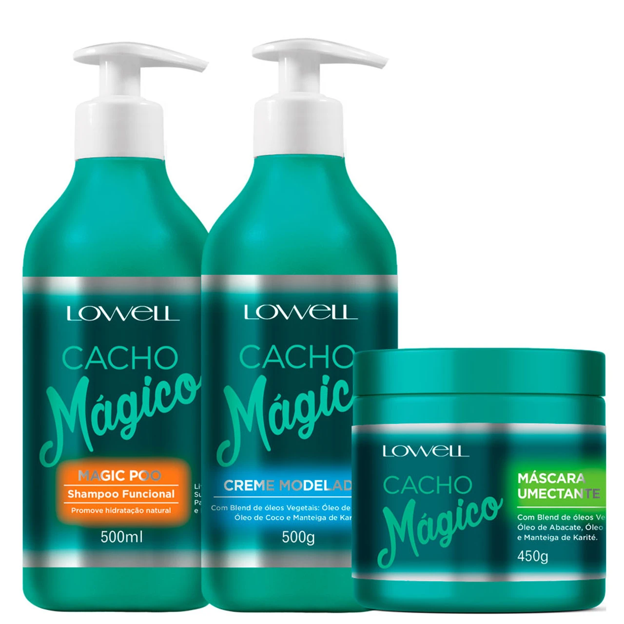 Kit Lowell Cacho Mágico developed for curly hair, cleans, moisturizes, has protective action, promotes shine and eliminates frizz. Check it out!