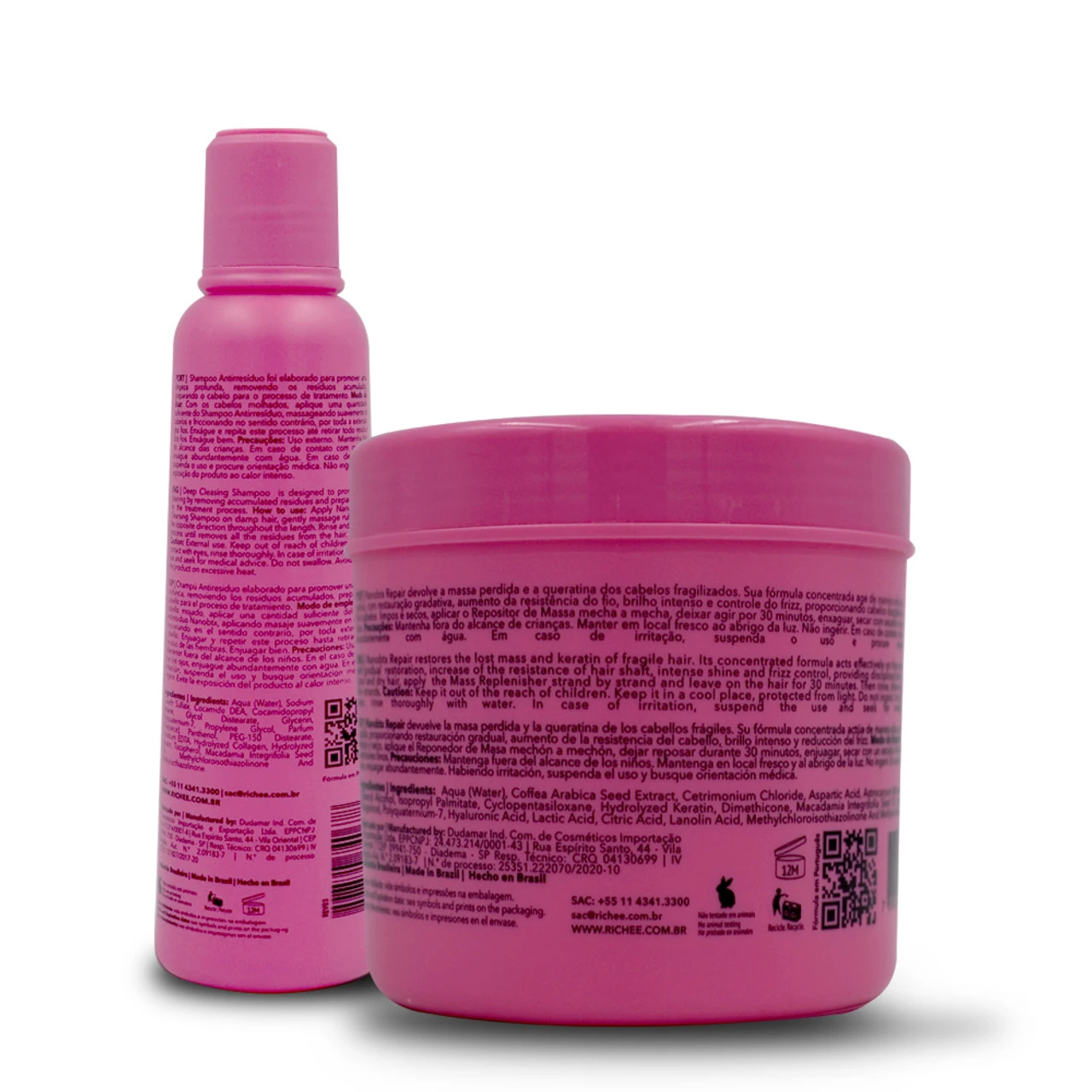 Kit Richée NanoBtx Repair Shampoo and Anti Residual Mass Replenisher for damaged and chemically treated hair. Promotes intense hydration. Check it out!