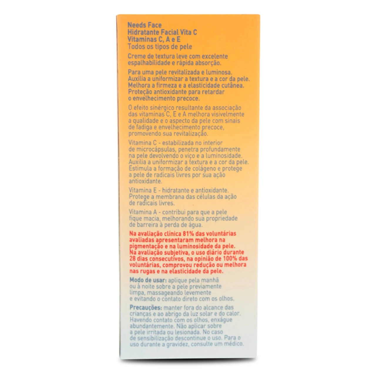 Needs Face Moisturizing Facial Vita C with vitamins C, A and E, suitable for all skin types. It has antioxidant action, moisturizes and revitalizes the skin. Get to know it!