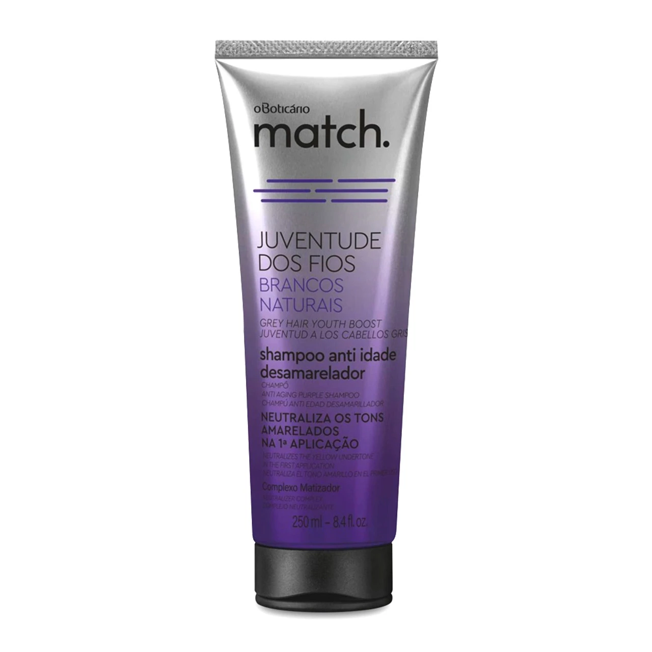 O Boticário Match Shampoo Hair Youth indicated for white and gray hair. Revitalizes the threads and neutralizes the yellowish tones. Get to know it!