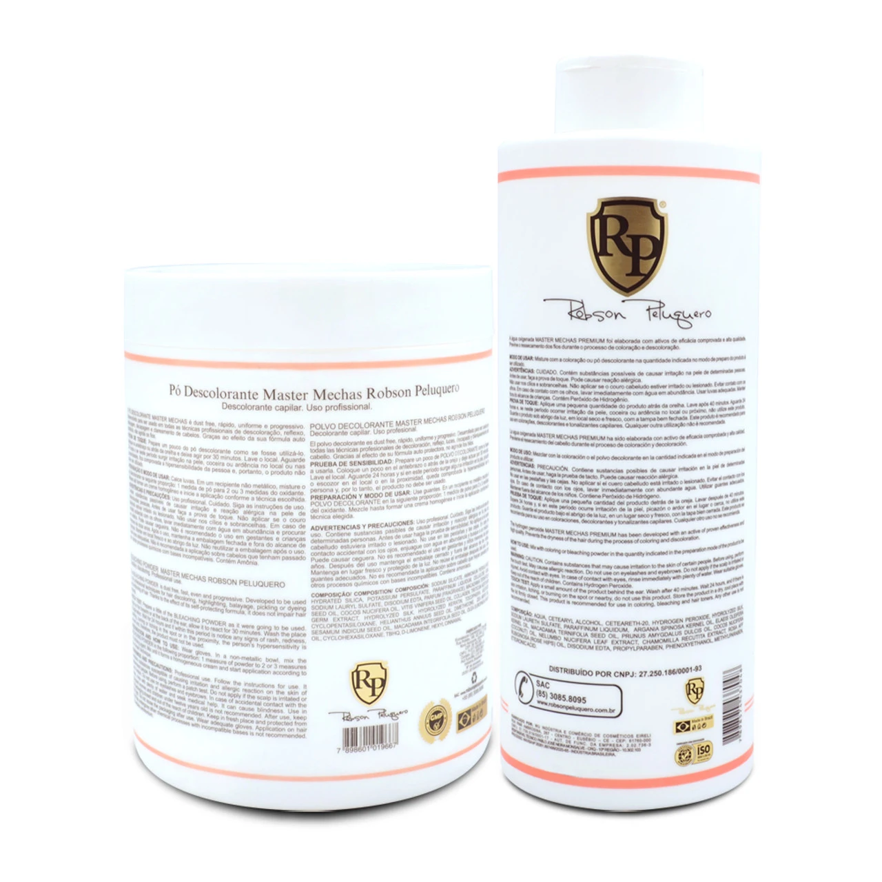 Be the first to review “Professional Kit Robson Peluquero Bleaching Powder Master Mechas 500g/17.6 Oz + Ox 40 Volumes Developer Emulsion 900ml/30.43 Fl.oz” Cancel reply